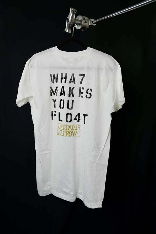 FLOATING WORLD Bold Repeating "What Makes You Float?" T Shirt (Blue)